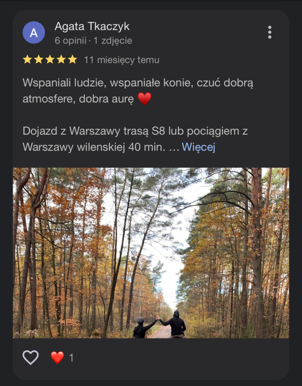 W nauce jazdy konnej kładziemy nacisk na indywidualne podejscie , pracę w małych grupach w dobrej atmosferze. Dzielimy się pasją do koni i jeździectwa. Trenujemy w zgodzie z końską naturą. Staramy się dbać o każdy najmniejszy szczegół abyś mógł poczuć się u nas sielsko . Naszym celem jest nie tylko rozwijanie umiejętności technicznych , ale także budowanie głębokiej więzi z koniem , której podstawą jest wzajemne zaufanie i szacunek.